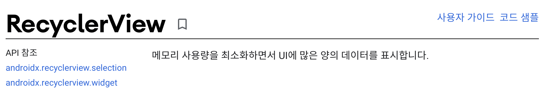 https://developer.android.com/jetpack/androidx/releases/recyclerview?hl=ko